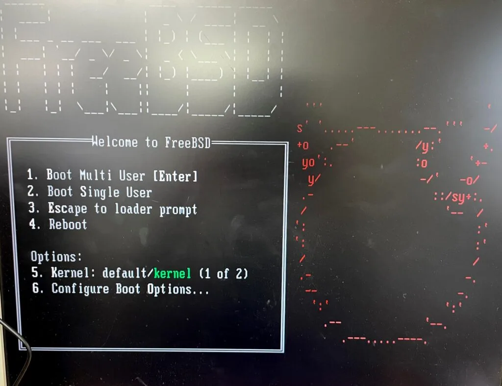 ①FreeBSDという文字ととともに赤い鬼みたいなグラフィックが出てきたらwipe-outが起動している