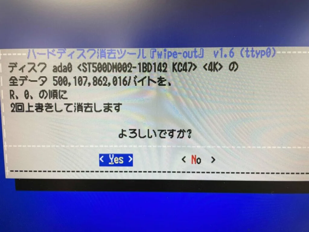 wipe-outはデータ削除されているかの確認もできるが、確認だけで数時間が掛かってしまうので今回は実施していない