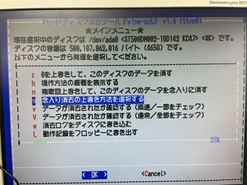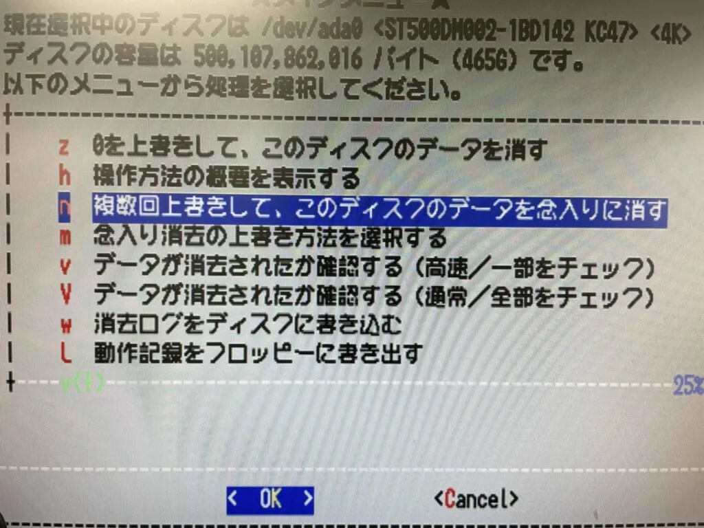 今回とる方法は、ツールでディスクを上書きして第三者が復元したり情報を読み込めないように対策する