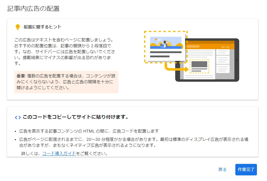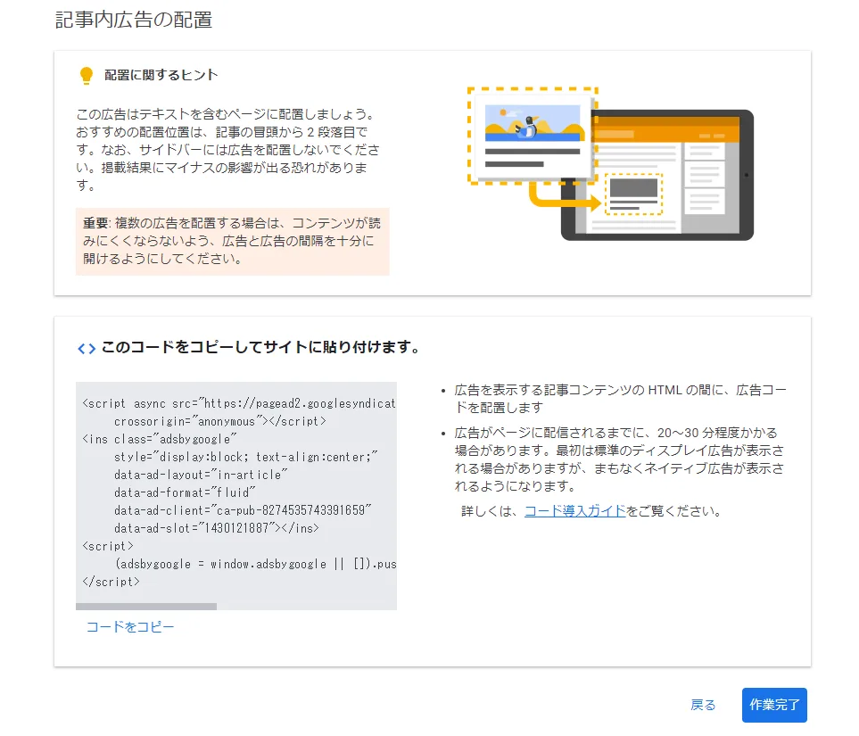 Google AdSenseで記事内広告のコードを作成した際に、コードが表示されない サーバー X Facebook はてブ LINE コピー 2021.12.212025.04.24 このサイトはアフィリエイト広告(Amazonアソシエイト含む)を掲載しています。 Google AdSenseで、記事内広告を作成しようとしたときにコードが表示されなくて困ったときがありました他のディスプレイ広告やインフィード広告は平気なのに、記事内広告だけ表示できません 目次 現象対策 現象 記事内広告作成しようとしたときに以下のようにコードが表示されません 対策 uBlock Originというコンテンツブロッカーを使用していることが原因でしたこれをオフにし、再読み込みするとコードが表示されました
