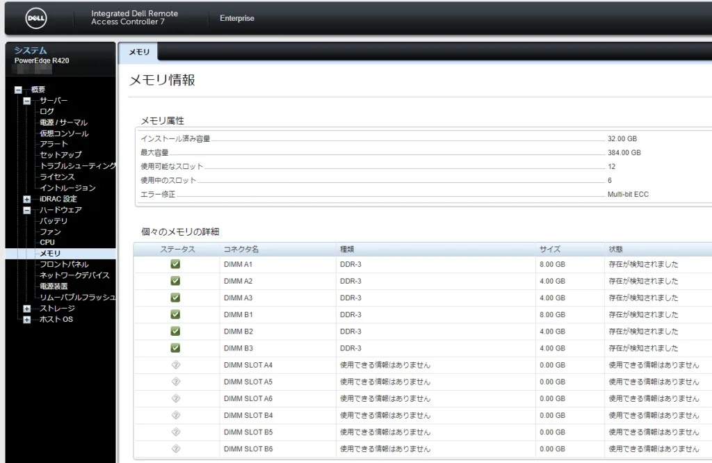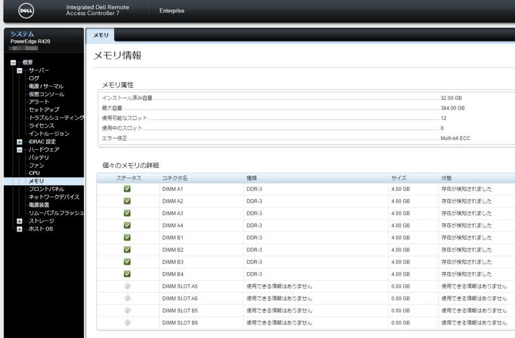 PowerEdge R420 は導入時から4GBメモリ×8本(32GB)で運用していました