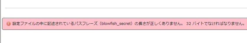 ※「設定ファイルに、暗号化(blowfish_secret)用の非公開パスフレーズの設定を必要とするようになりました。」とエラーが出る場合は下記を参照ください。