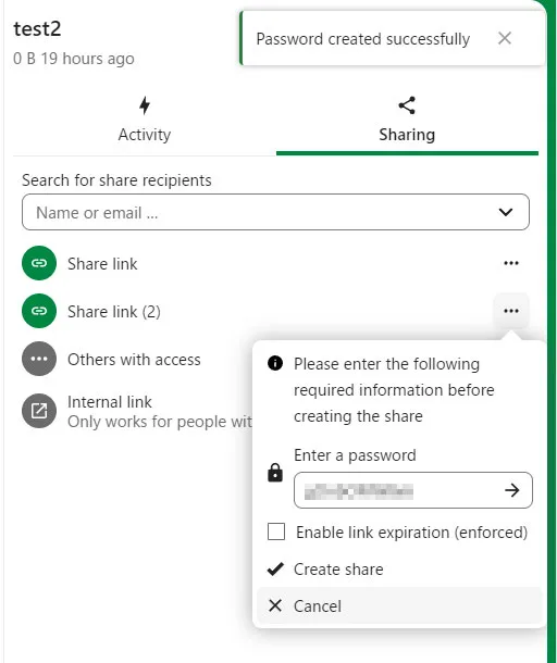 ⇒空欄にすると例のバグが再発しました。もしかすると従来はパスワード欄が空欄でもリンク作成できてしまう設定なのかもしれませんが、バグが発生している間は悲しきかな、作成できないゆえにひとまず大丈夫という結論に私はなりました