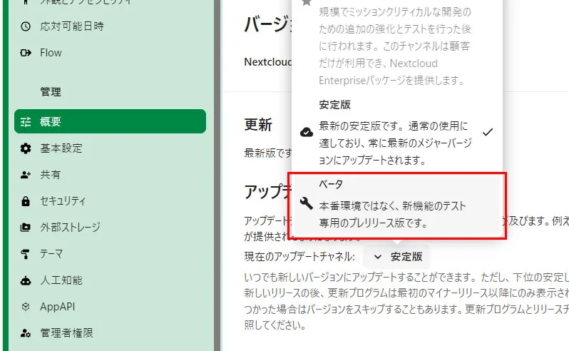 ↑30.0.4が表示されない場合は、アップデートチャネルを「ベータ」に変更することで表示されます