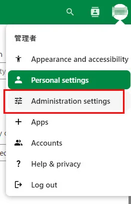ログイン後、右上のアイコンをクリックし、「Administration settings(管理者設定)」をクリックします