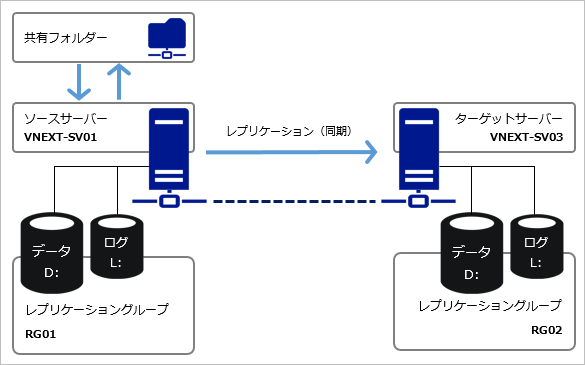 サーバー間、もしくはクラスター間で「同期」もしくは「非同期」でレプリケーションを実施します