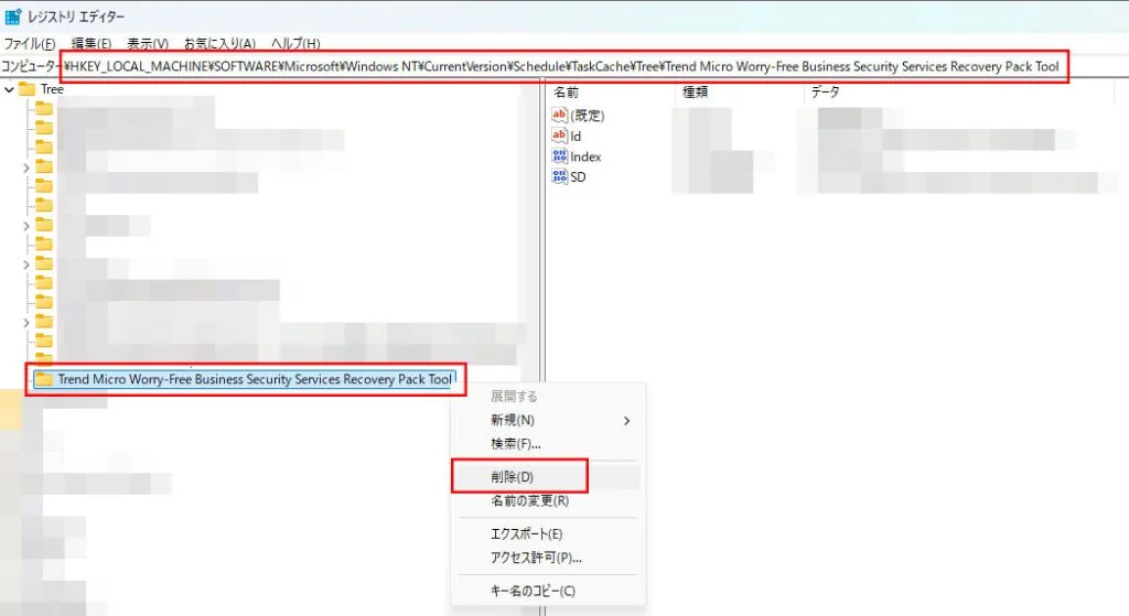 HKEY_LOCAL_MACHINE\SOFTWARE\Microsoft\Windows NT\CurrentVersion\Schedule\TaskCache\Tree\Trend Micro Worry-Free Business Security Services Recovery Pack Tool