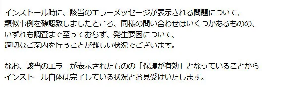 インストール失敗しているのに何言っているの?と思われるかもしれませんが、サポートの回答によるとエラーコード2755が表示されていてもインストール完了しているケースがあるそうです