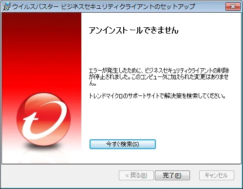 ウイルスバスター ビジネスセキュリティエージェントの手動アンインストール方法
