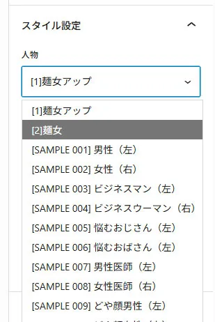 Cocoonで使っている吹き出しの機能ですが、ブロックエディタから吹き出しを選択するとsampleの吹き出しが表示されます