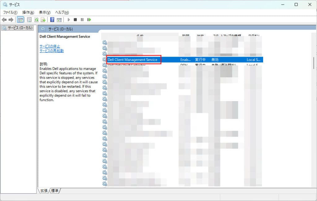 「Dell Client Management Service」を探し、ダブルクリックして開きます