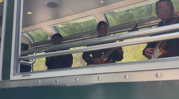 この電車ですが、乗るまでの徒歩移動中に民族っぽい服装のスタッフが曲を流しながら踊ってくれたり、車内でショーを開いてくれたりとエンターテイメント性がありました